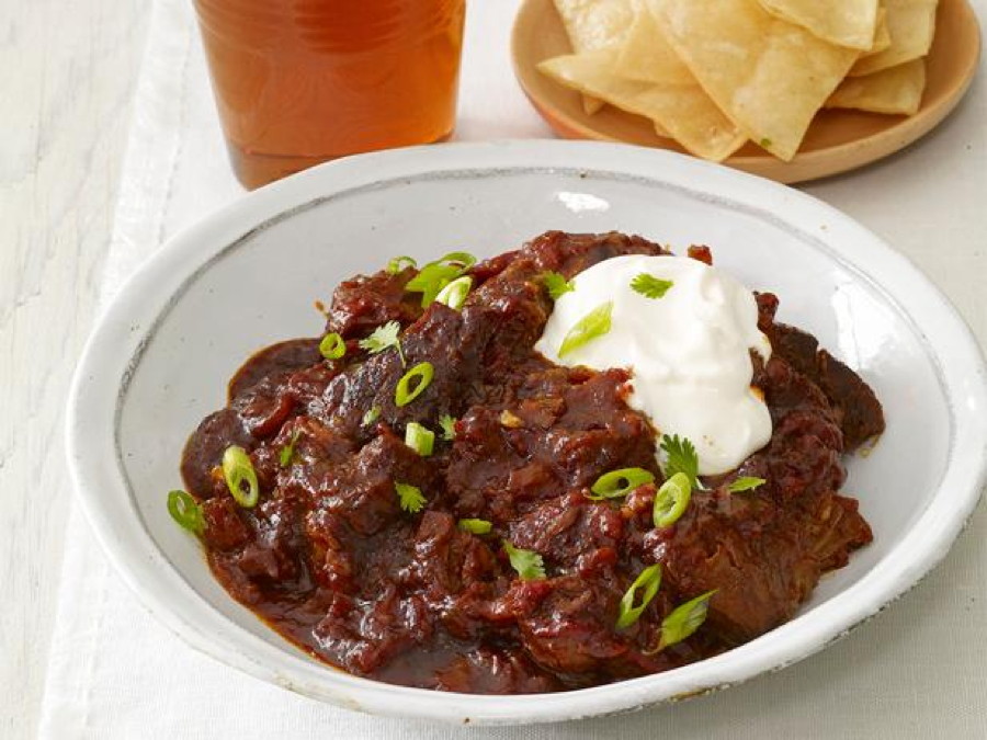 1/2 hour before done, taste for salt, add tortilla strips and chocolate