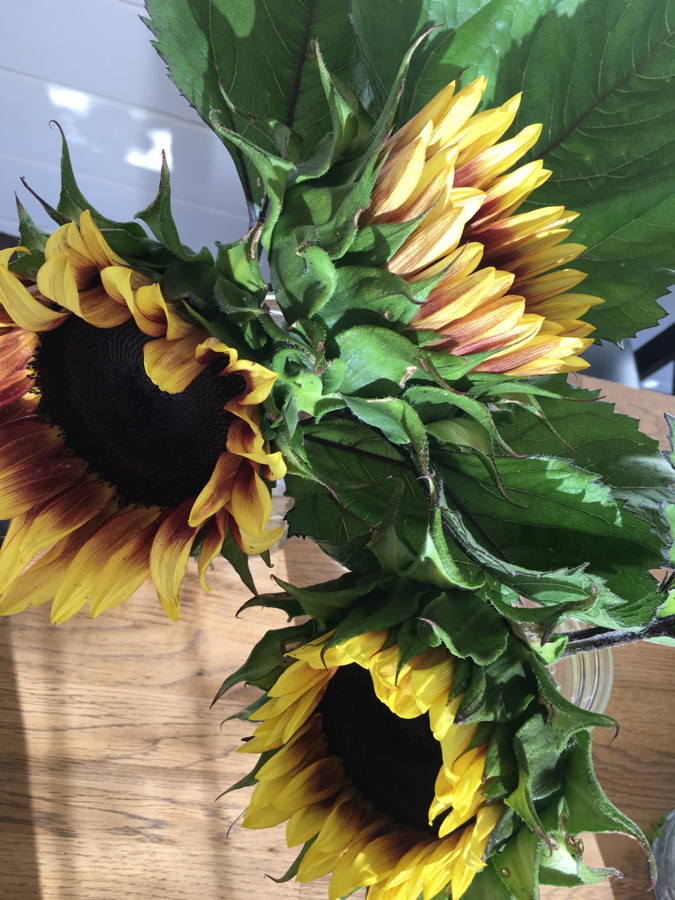 I did get some quiet time in February and March and that was lovely. Got a few things done and was well ready for planting time when it came ‘round. I opted to go into the field with our first five rows of sunflowers and crops in early April. Highly risky! But we have 40 rows at 70 ft per row, I figured if I lost the first five due to a frost, I had 35 more. We’ll I didn’t lose them and hence, we had big beautiful sunflowers, peas, greens and herbs by mid June.