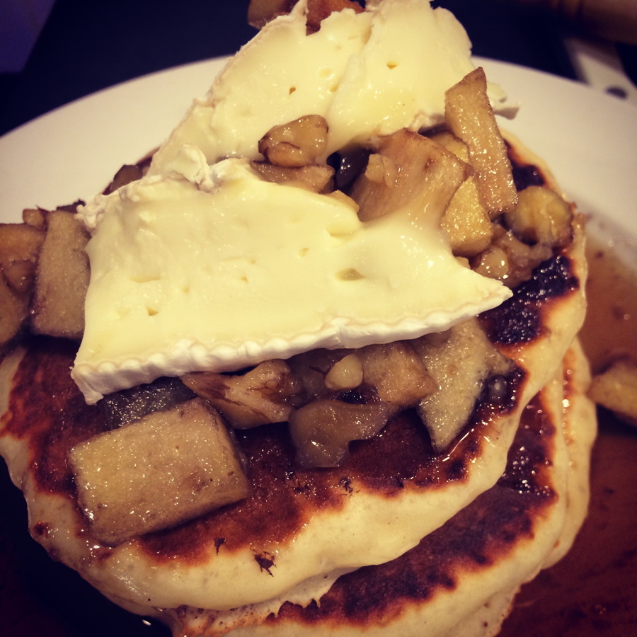 Top with butter, maple syrup, fresh fruit or apple/walnut/brie (recipe follows)